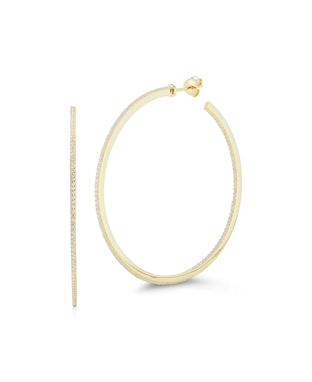Rachel Zoe 14K Gold Over Sterling Silver Jumbo Pave Thin Hoop Earrings