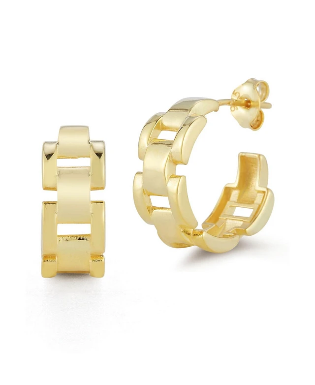 Rachel Zoe 14K Gold Plated Sterling Silver Chain Link Small Hoop Earrings