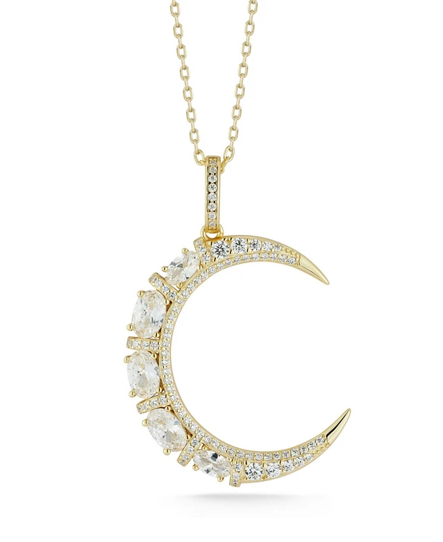 Cubic Zirconia Crescent Moon Disc 18" Pendant Necklace in 14k Gold-Plated Sterling Silver