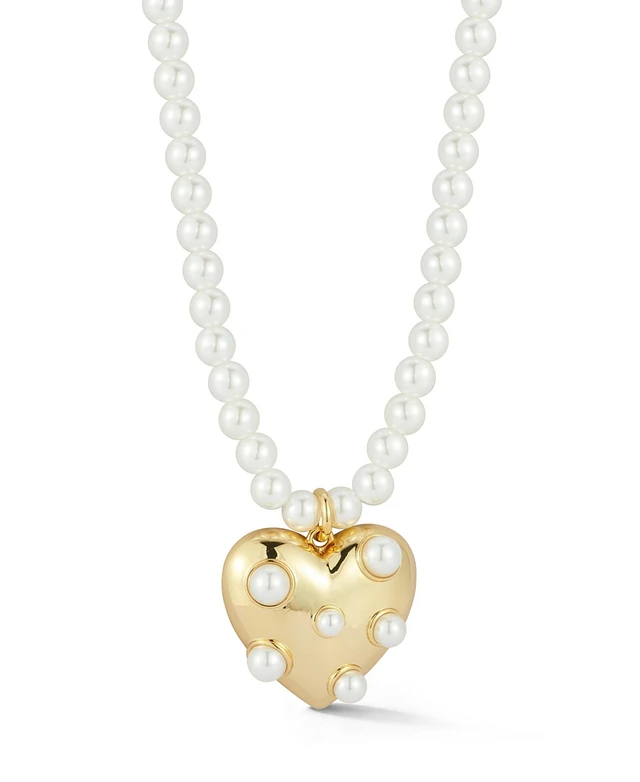 Rachel Zoe Gold Plated Heart Necklace with Pearl Chain