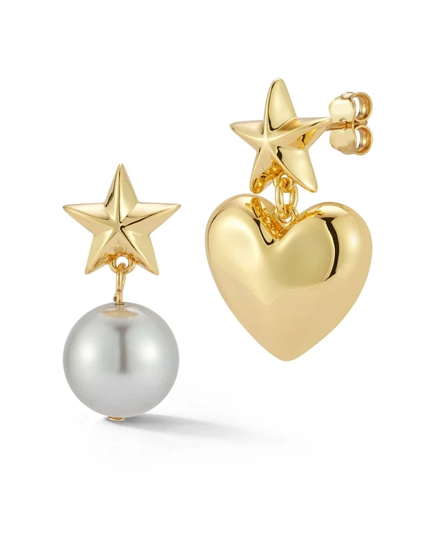 Rachel Zoe Gold Plated Mismatched Pearl and Heart Drop Earrings