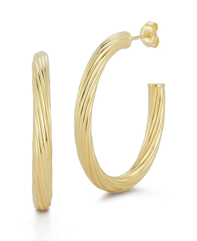 Rachel Zoe 14K Gold Plated Sterling Silver Large Twist Hoop Earrings