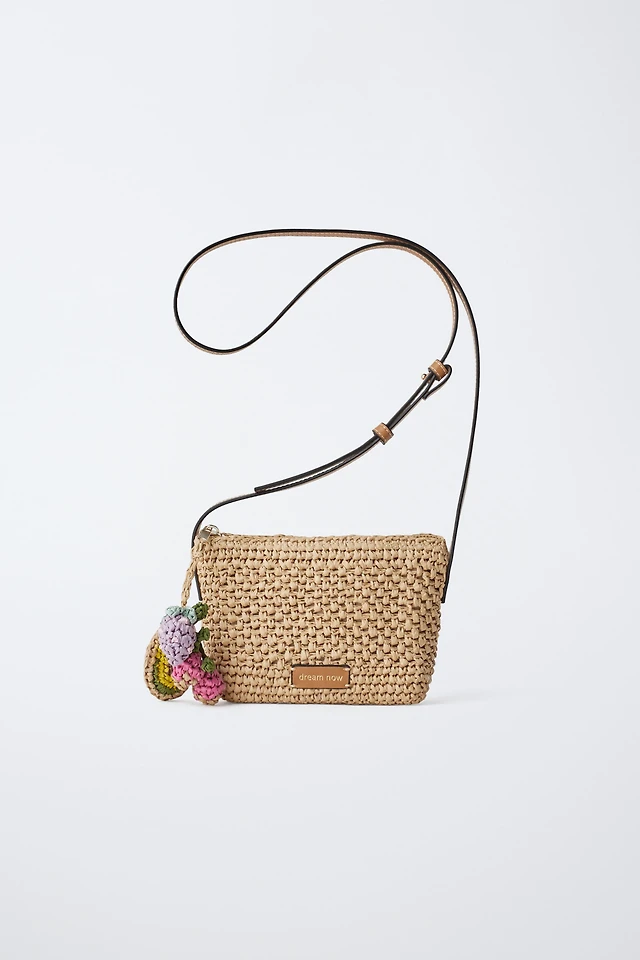 RAFFIA EFFECT CHARM CROSSBODY BAG