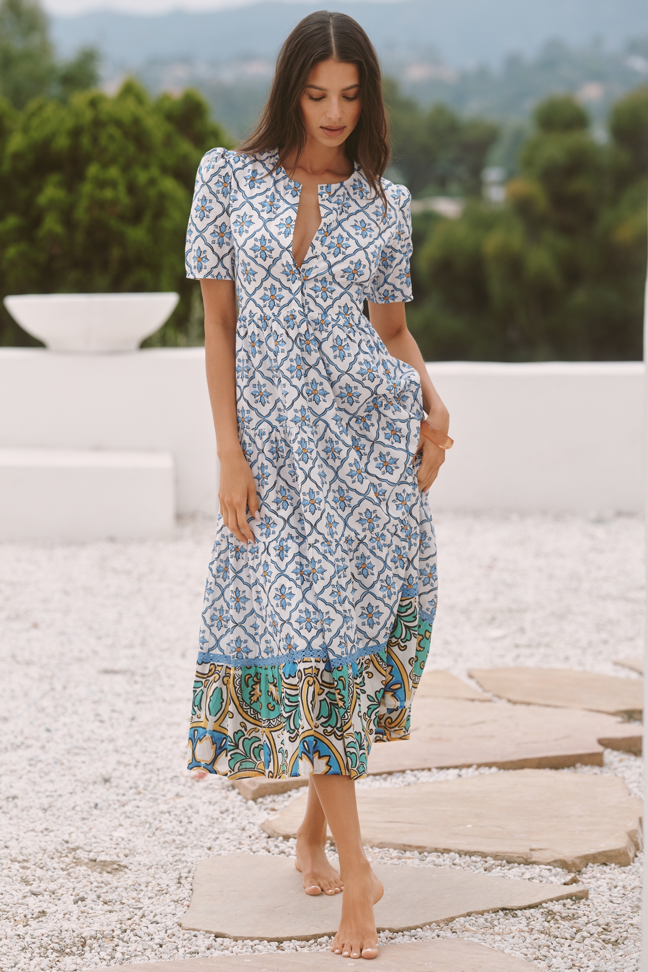 Ro's Garden Daphne Short-Sleeve Midi Dress