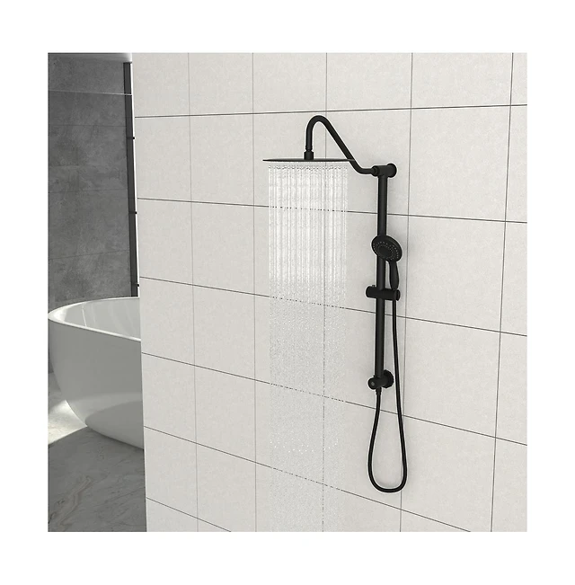 Rainsken 10 Inch Shower System with 5 Function Rain Hand Shower, 26.3" Slide Bar Shower Head Combo, Matte Black
