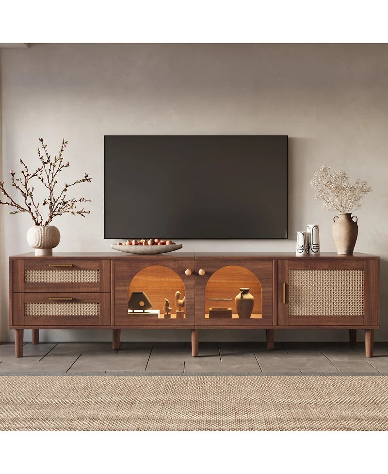 Rainsken Led Tv Stand for TVs up to 80'', Rattan Media Console Table, Entertainment Center with 3 Cabinets and 2 Drawers for Living Room in Bloomington, MN