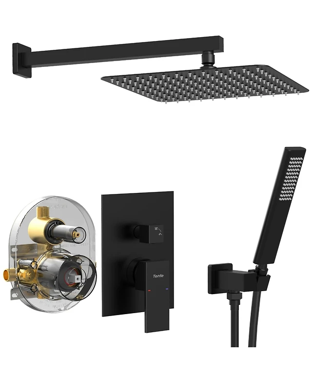 Rainsken Male Npt Black Shower System, 12 Inch Shower Fixtures Rain Shower Head with Handheld Shower Spray, Wall Mount Shower Faucet Set for Bathroom