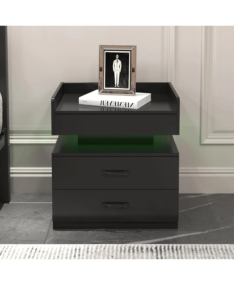 Rainsken Nightstand with Adjustable Led Strip Light, Wood Bedside Table with 2 Drawers and Open Compartment, End Table for Bedroom in Bloomington, MN