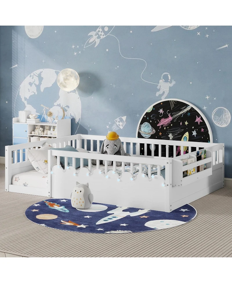 Rainsken Size Montessori Floor Bed with Storage Shelf and Light, No Slats Included