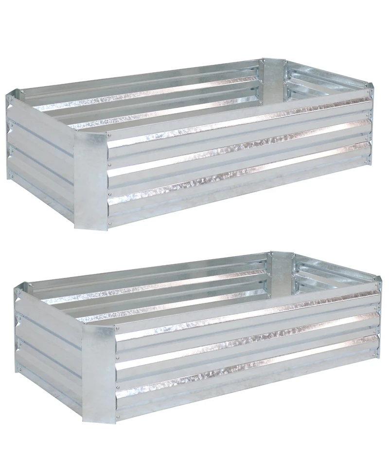 This set of rectangular raised garden beds offers a durable and practical solution for growing vegetables, herbs, and flowers. Constructed from 1mm thick galvanized steel, it resists rust, corrosion, and weathering for long-lasting performance season after season. With a 59-gallon soil capacity, these garden beds provide ample room for a variety of plants, encouraging healthy root systems and steady growth. The open-bottom design supports natural drainage and allows deep-rooting plants to thrive by promoting direct access to nutrient-rich soil. Measuring 48" wide, 24" deep, and 11.75" high, each bed fits easily into both small and large outdoor spaces. Assembly is straightforward with all necessary hardware included, and the sturdy panels are built to maintain shape without warping or bending under pressure. The sleek, functional design complements a range of garden aesthetics while providing a strong and supportive structure for planting.