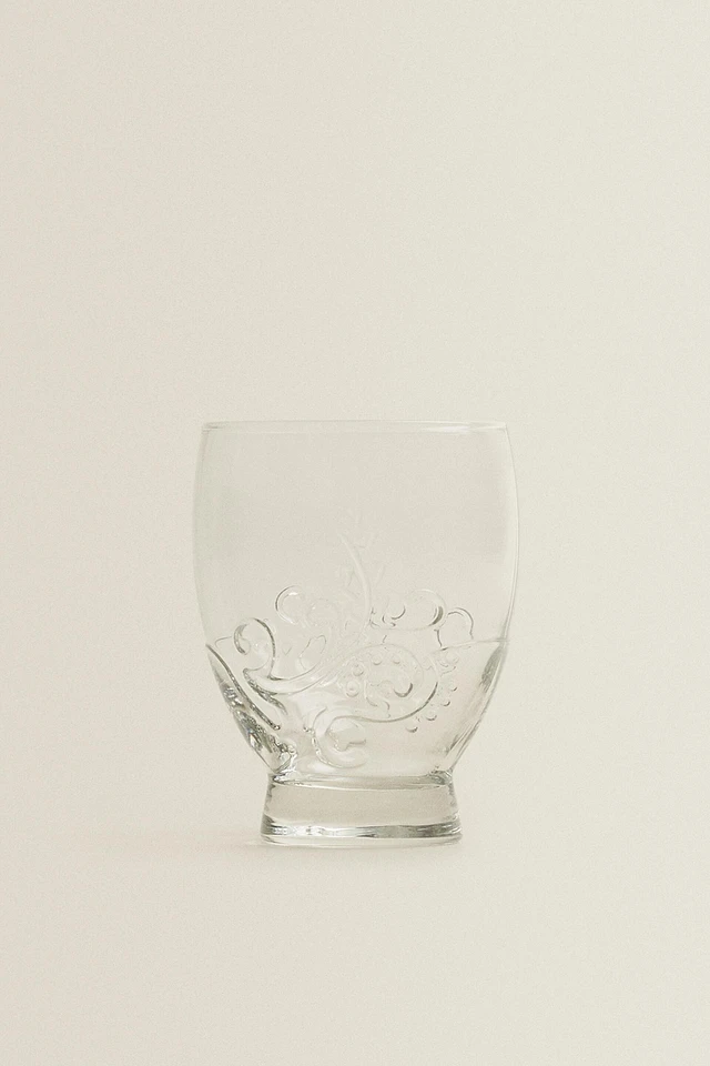 RAISED FLORAL DESIGN GLASS TUMBLER