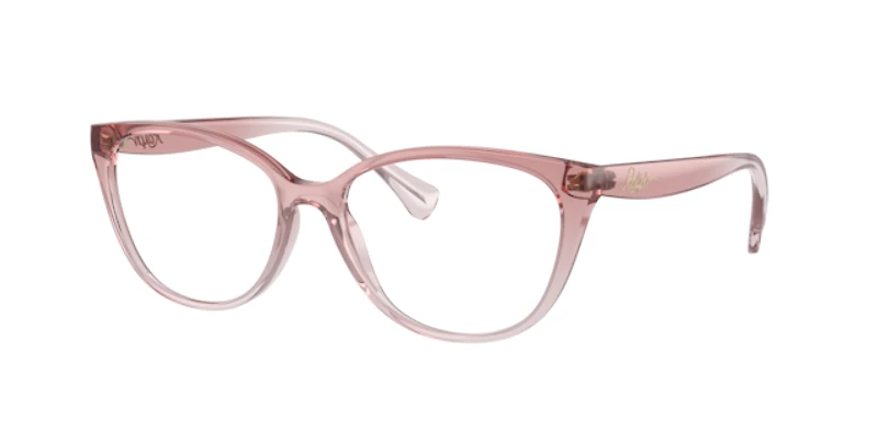 Elevate your style with ralph ra7135 eyeglasses. The cat eye shape adds a touch of glamour, while the polished finish gives these frames a sleek and sophisticated look. The shiny trasparent pink color adds a pop of personality to any outfit. These glasses are not just stylish, but also practical. Embrace your individuality and choose ralph ra7135 as your new eyewear accessory.