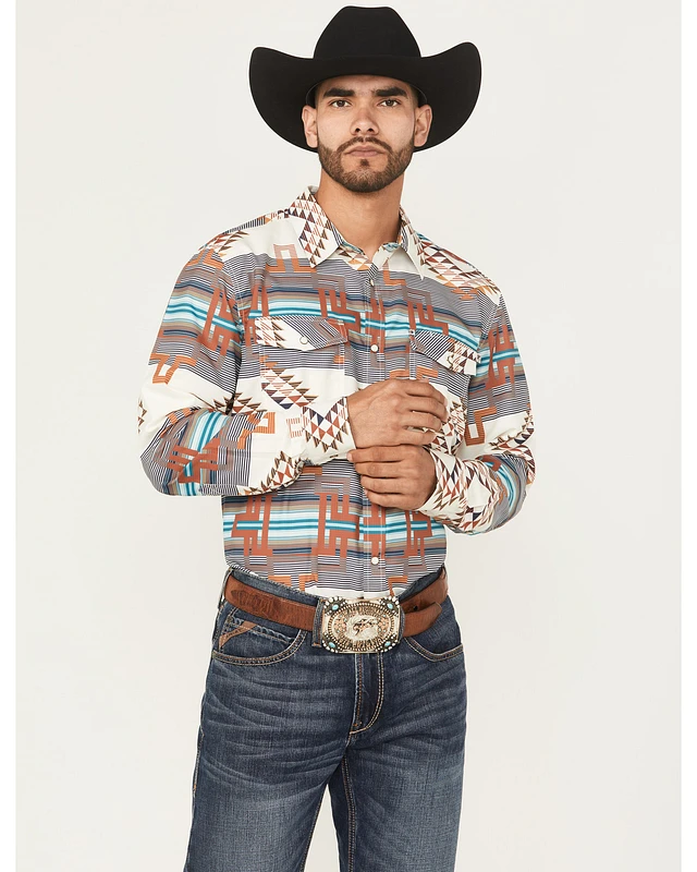 RANK 45® Men's Multaz Southwestern Print Geo Long Sleeve Button-Down Performance Stretch Western Shirt