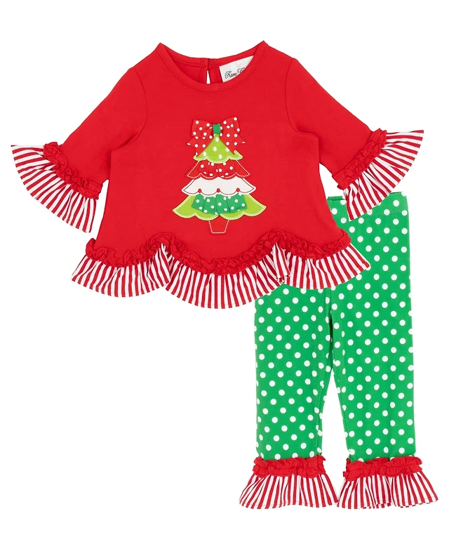 Rare Editions Baby Girl 2-Piece Holiday Tree Applique Top and Polka Dot Leggings Set