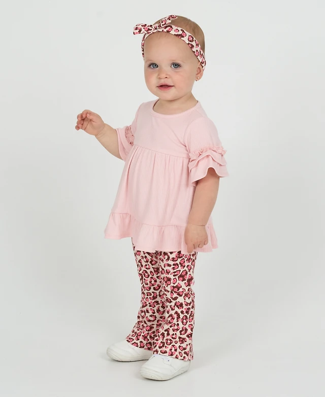 Rare Editions Baby Girls 3-Piece Ruffle Top, Leopard Flare Pants and Headband Set