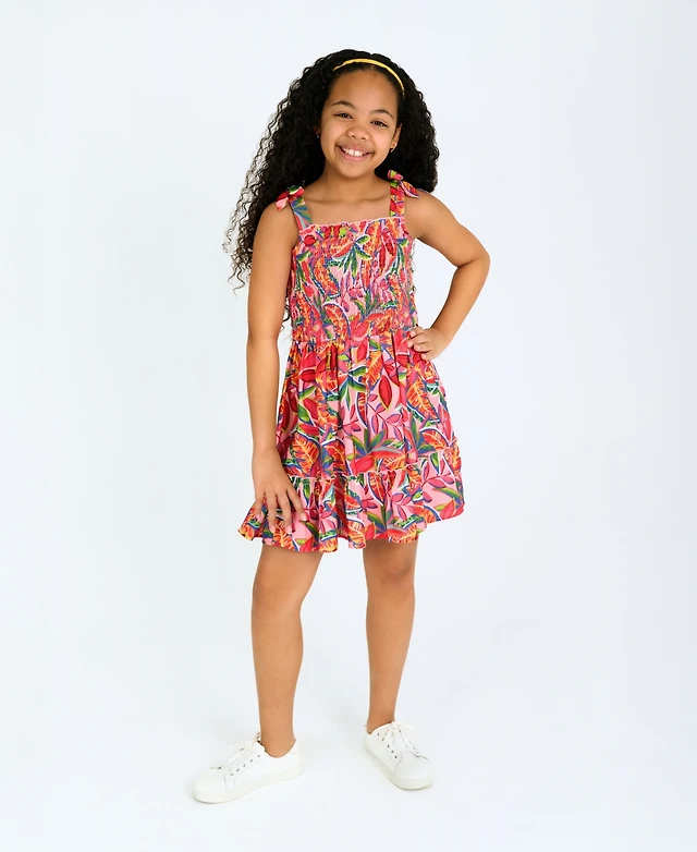 Rare Editions Big Girls Tropical Stretch Print Dress
