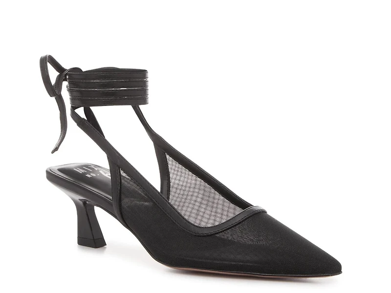 Staying on trend is easy in the Ravee pump from Mix No. 6. Featuring a sleek ankle wrap, mesh upper, and kitten heel for fresh style.