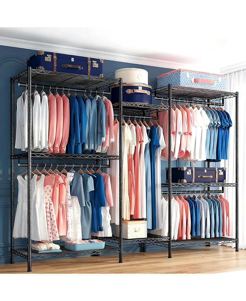 Its core design includes five hanging rods and eight storage shelves, creating a comprehensive system capable of holding over 260 garments. This effectively transforms bedrooms, dorm rooms, or any available space into a fully organized wardrobe, maximizing every inch of vertical storage.