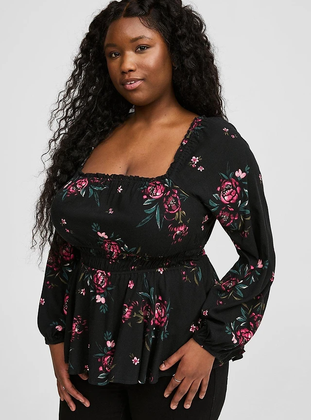 Peplum Chiffon Long Sleeve Top