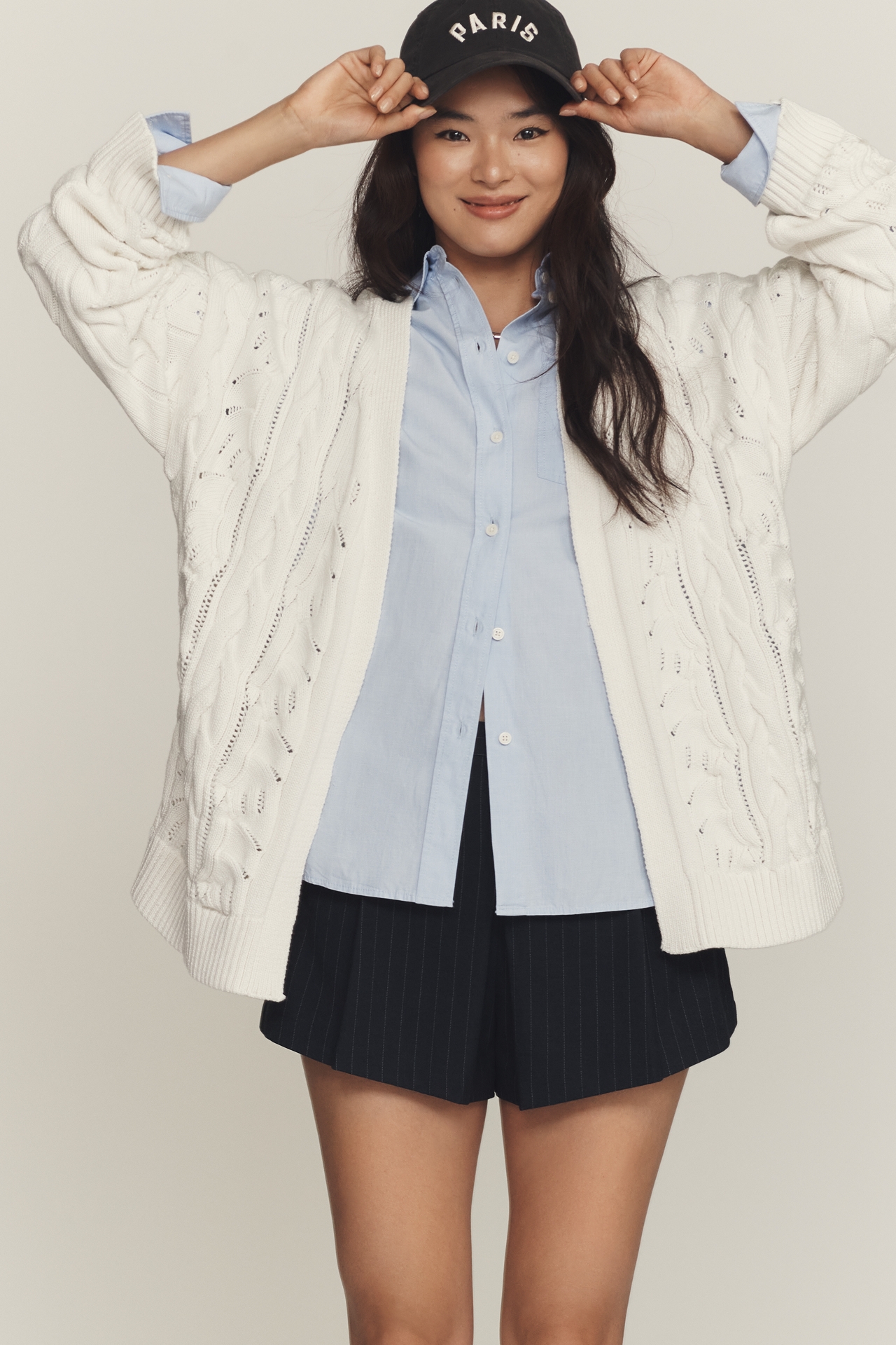 By Anthropologie Crop Cable-Knit Cardigan Sweater