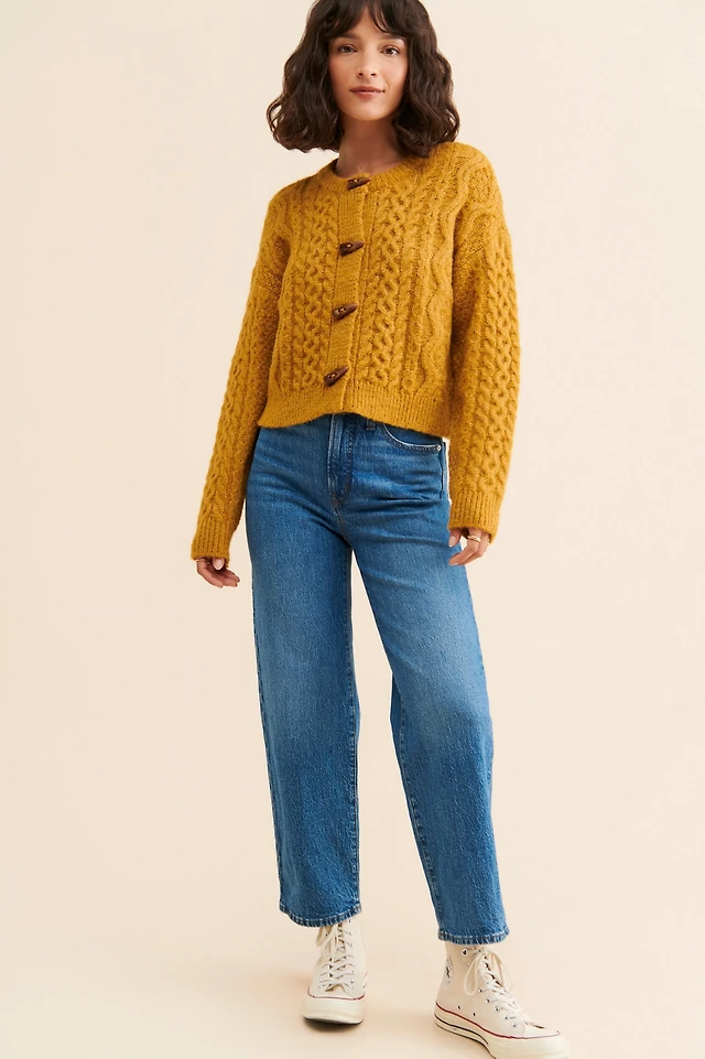 By Anthropologie Crop Cable-Knit Cardigan Sweater