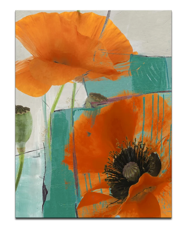 Ready2HangArt, 'Elegant Poppy Iii' Blue Floral Canvas Wall Art, 40x30"