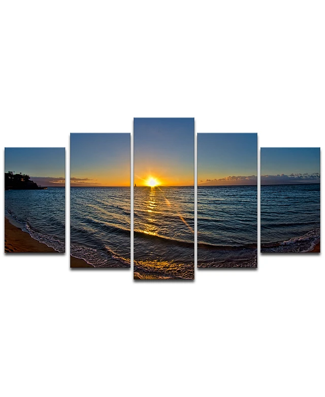 Ready2HangArt Niue Sunset 5 Piece Wrapped Canvas Coastal Wall Art Set, 30" x 60"