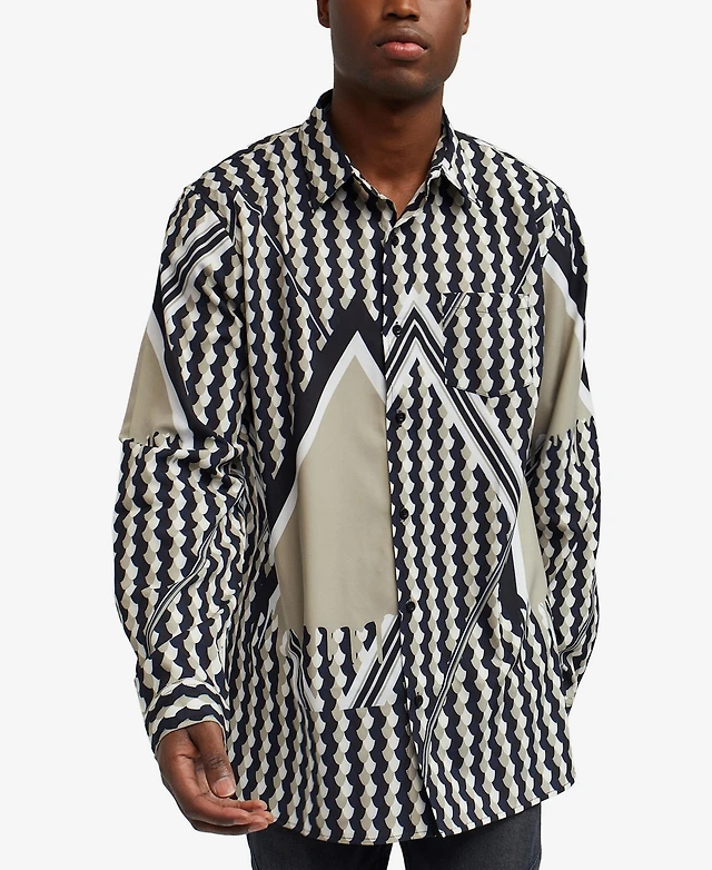 Reason Men's Geo Print Long Sleeves Woven Shirt