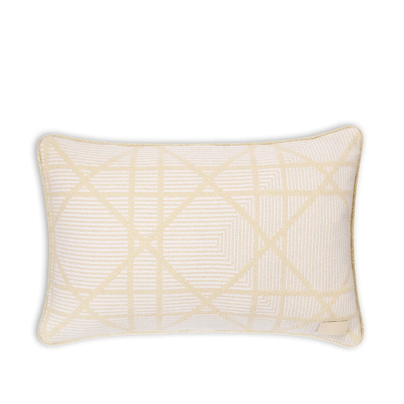 The rectangular pillow is unveiled as part of the Cross Cannage collection by Cordelia de Castellane, who reimagines the hallmark House code in exceptionally bold interpretations. Crafted in wool, cashmere and silk jacquard, the pillow's grid showcases the harmonious interplay between white and deep black for a fascinating optical effect. The design will enhance any interior with the quintessentially Dior code and can be coordinated with other pieces from the Cross Cannage line for a timeless ode to creativity.