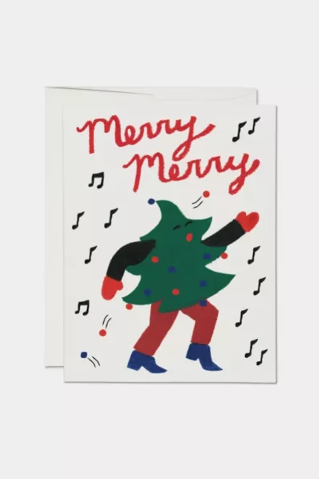 Red Cap Dancing Tree Holiday Card