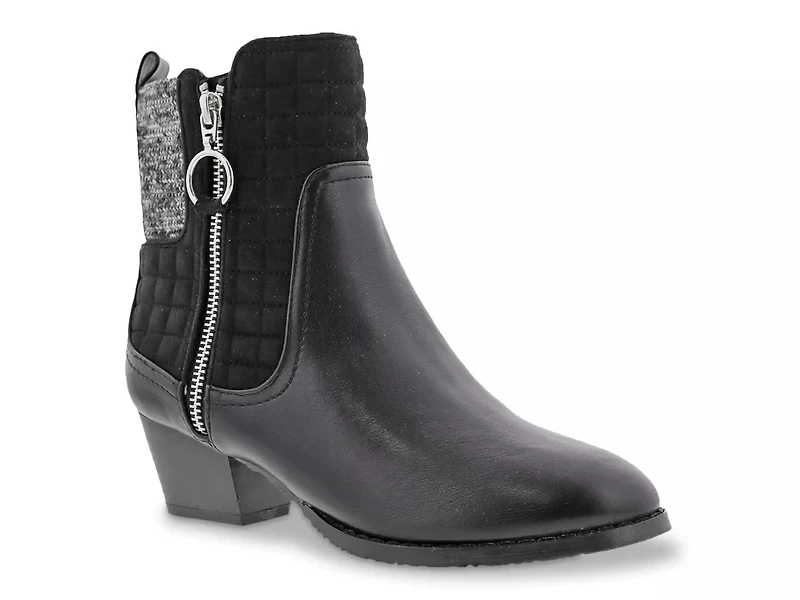Elevate fave look with the Ros Hommerson Reese bootie. Crafted from faux leather and quilted textile for a luxurious texture, bootie sharpens up looks with ease.