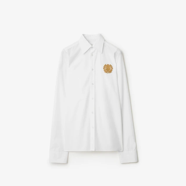 Regular Fit B Crest Cotton Shirt in Optic white - Women | Burberry® Official