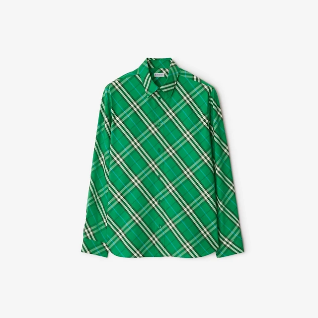 Relaxed Fit Check Cotton Shirt in Glade green - Men | Burberry® Official