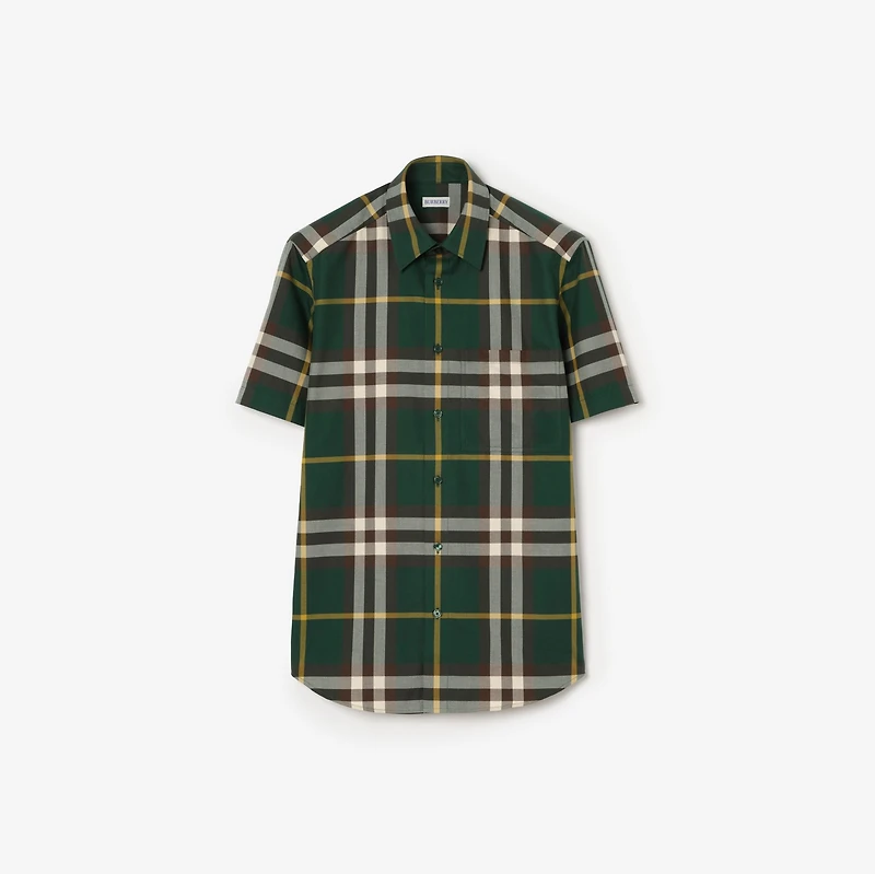 A short-sleeved shirt in cotton twill, woven with the Burberry Check. The style is cut to a regular fit. Button closure Point collar Chest patch pocket Curved hem