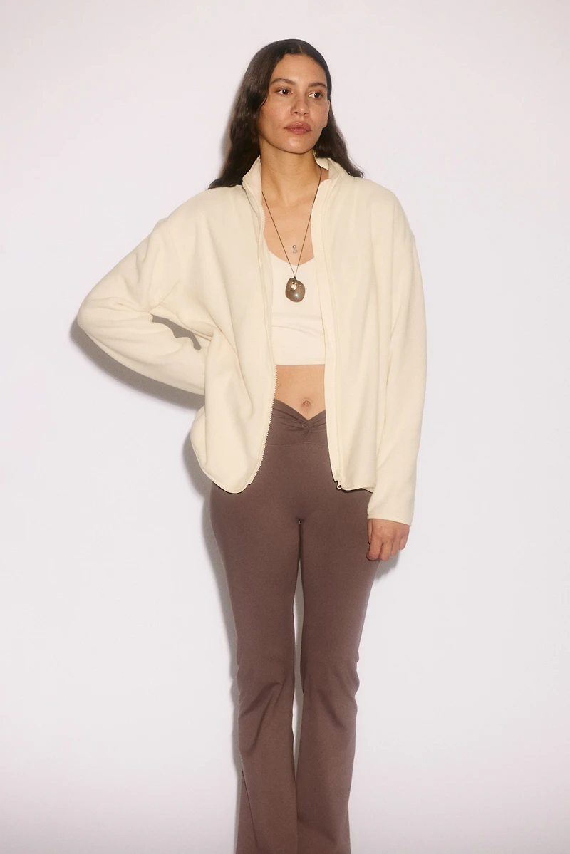 Regular-fit activewear jacket in soft, warm fleece. Stand-up collar, two-way zipper at front, and handwarmer pockets at sides with zipper. Long sleeves and elasticized binding at cuffs and hem. Slightly rounded hem. Unlined.