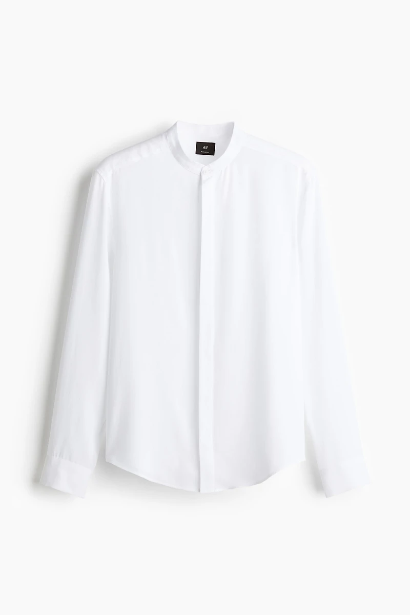 Regular Fit Lyocell Band-Collar Shirt