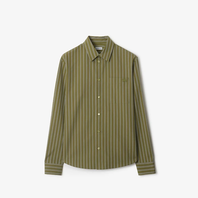 Regular Fit Striped Cotton Shirt in Wreath green - Men | Burberry® Official