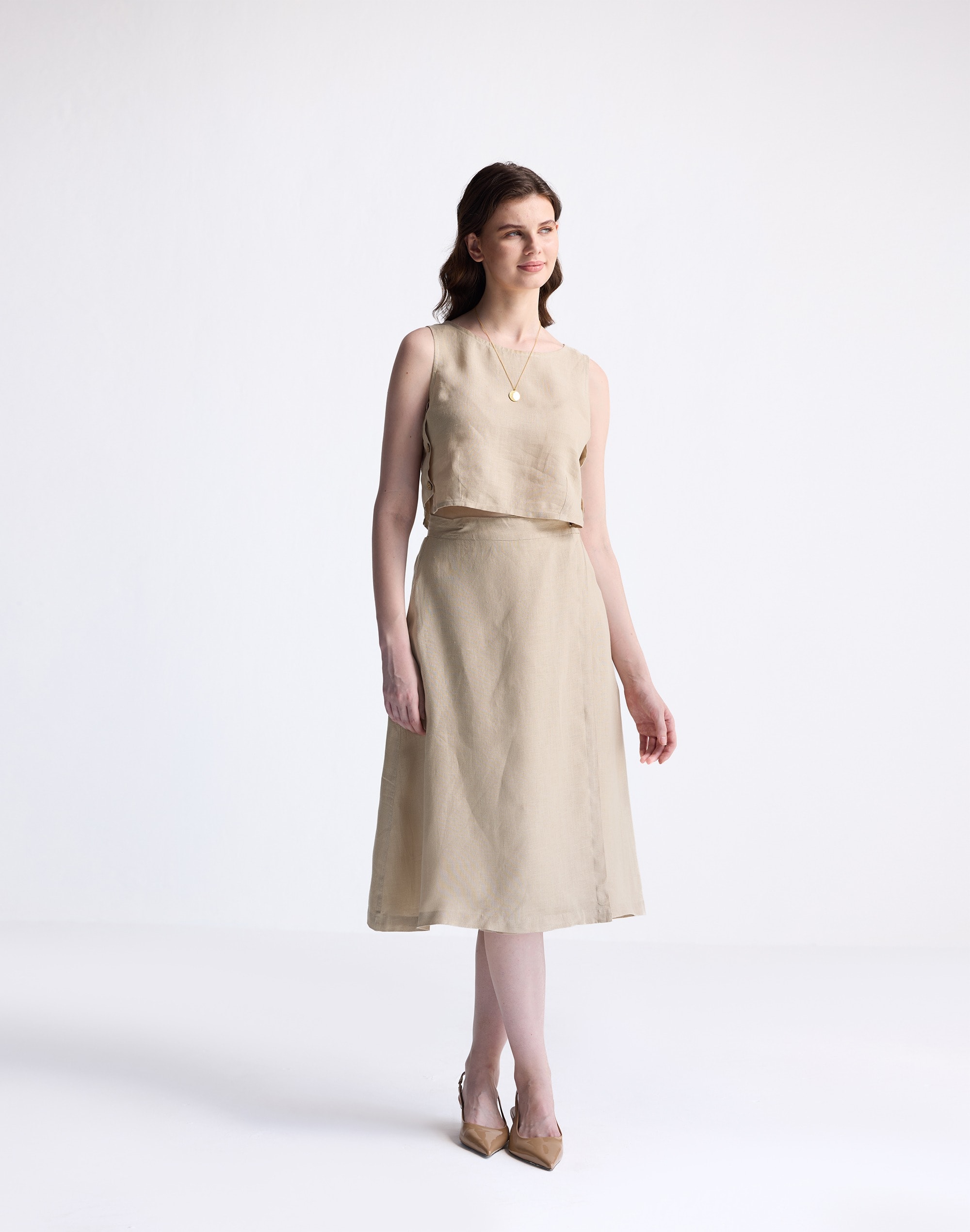 Reistor® Overlap Midi Skirt 100% Neutral Beige Hemp