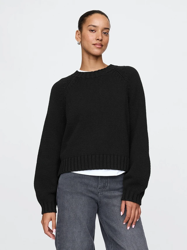 WOOL BLEND BALLOON SLEEVE SWEATER