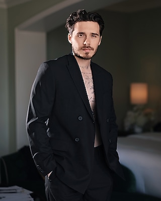 Cut in a modern relaxed fit, this suit jacket is relaxed through the shoulder and roomy through the chest. This style boasts enough stretch for all-day comfort, peak lapels, a double breasted front, and modern flap hand pockets. Plus, it features a center back vent and lining for added comfort.