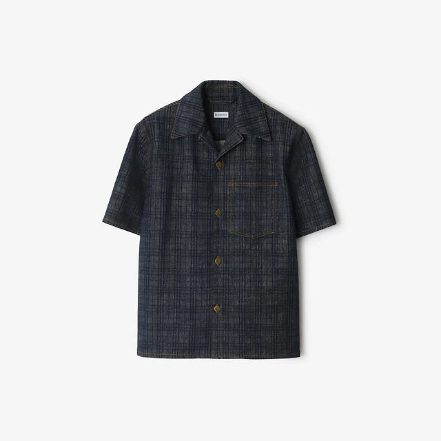 Relaxed Fit Check Denim Shirt in Indigo blue - Men, Cotton | Burberry® Official