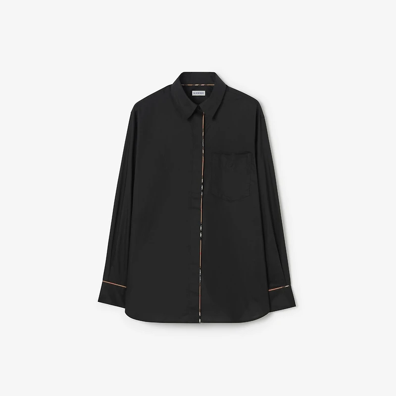 Relaxed Fit Check Trim Cotton Shirt in Black - Women | Burberry® Official