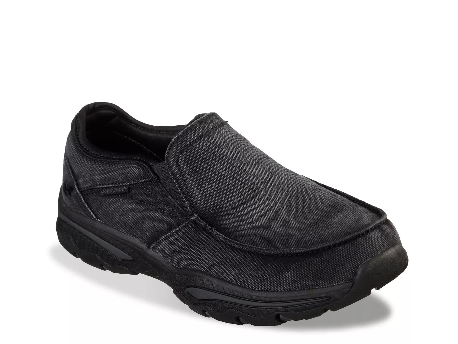 Slide into the Creston Moseco slip-on sneaker from Skechers for a comfortable and casual look. A Relaxed Fit® design offers a roomier fit while the Air-Cooled Memory Foam footbed cushions every step.