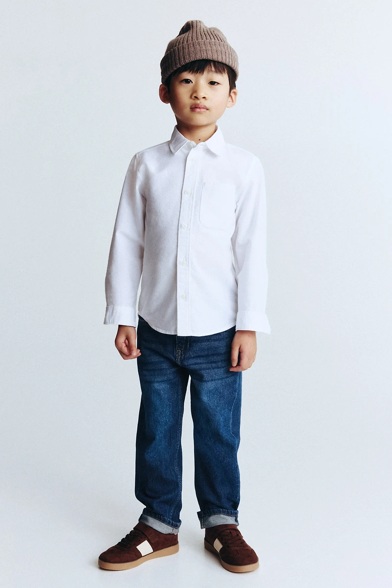5-pocket jeans in soft, stretchy cotton denim. Relaxed fit through hip, thigh, and leg. Adjustable, elasticized waistband and zip fly with button.