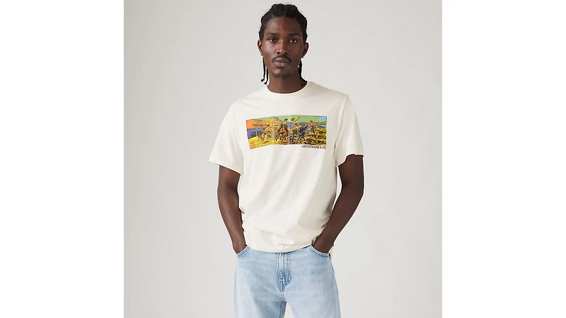 Jeans and a tee—name a more iconic duo, we’ll wait. Made with a easy fit, this Relaxed Fit Short Sleeve Graphic T-Shirt features signature graphics for an unmistakably Levi's® touch.