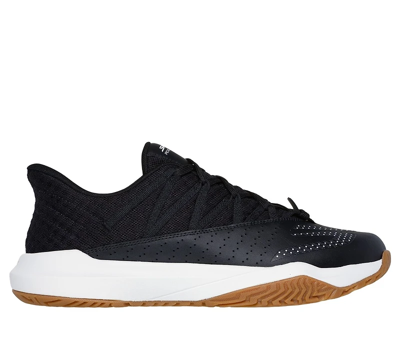 Step up your game with Skechers Relaxed Fit®: Viper Court Rally™. This lace-up pickleball design features a mesh and perforated leather overlay upper with quarter webbing detail, a lightweight Skechers Move Foam™ insole, and a Goodyear® gold compound non-marking outsole built for increased durability and controlled slides on the pickleball court surface.
