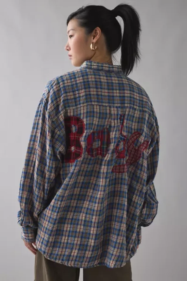 ReMADE By UO Baby Patched Graphic Oversized Flannel Shirt