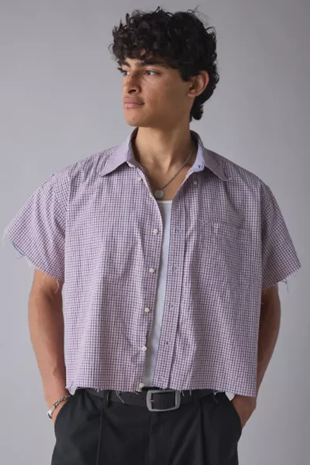 ReMADE By UO Check Pattern Cropped Short Sleeve Shirt