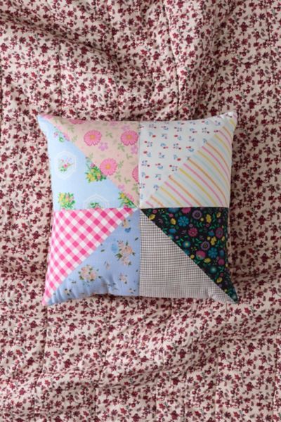 Add a unique finishing touch to your sofa and seating nooks with this patchwork decorative pillow. Made from remnant fabrics, this square pillow features a dual-sided pinwheel design made from mismatched cotton fabrics. Available exclusively at Urban Outfitters.