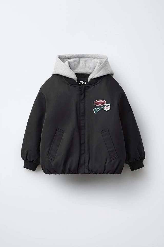 REMOVABLE PATCHES HOODED BOMBER JACKET